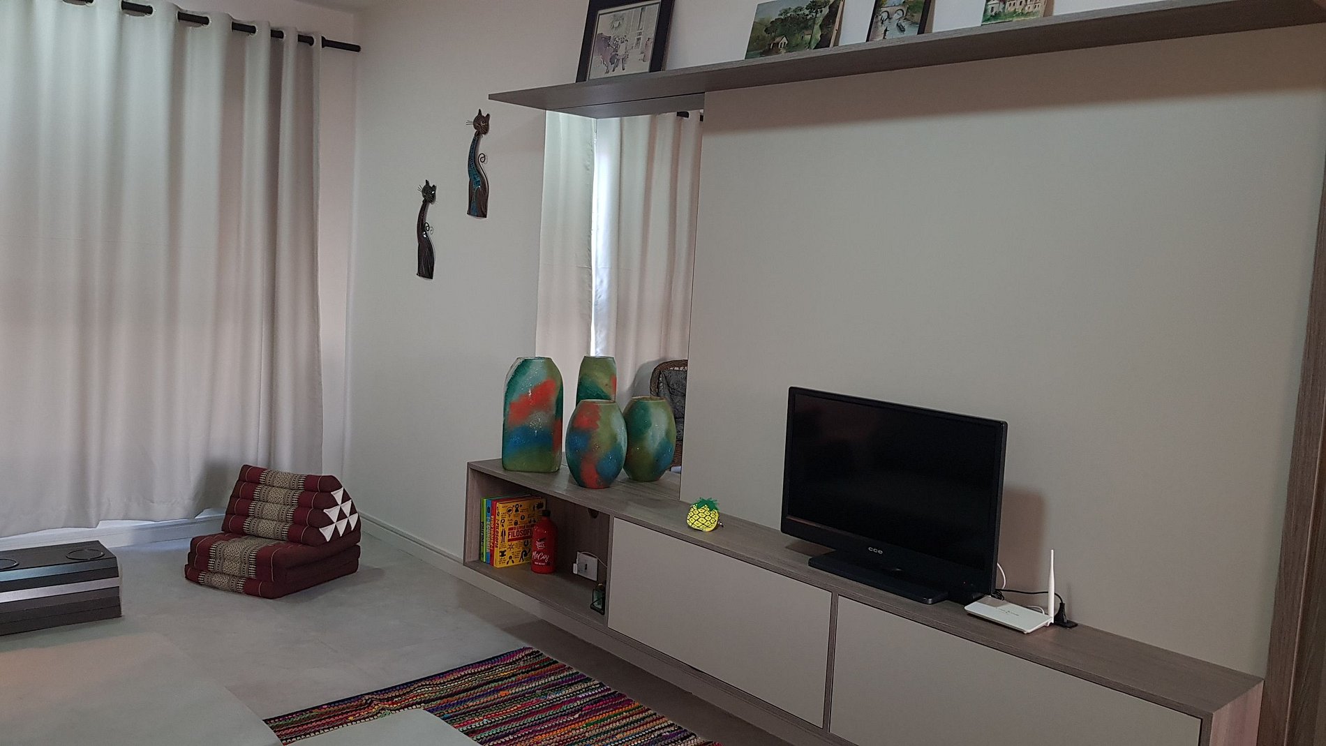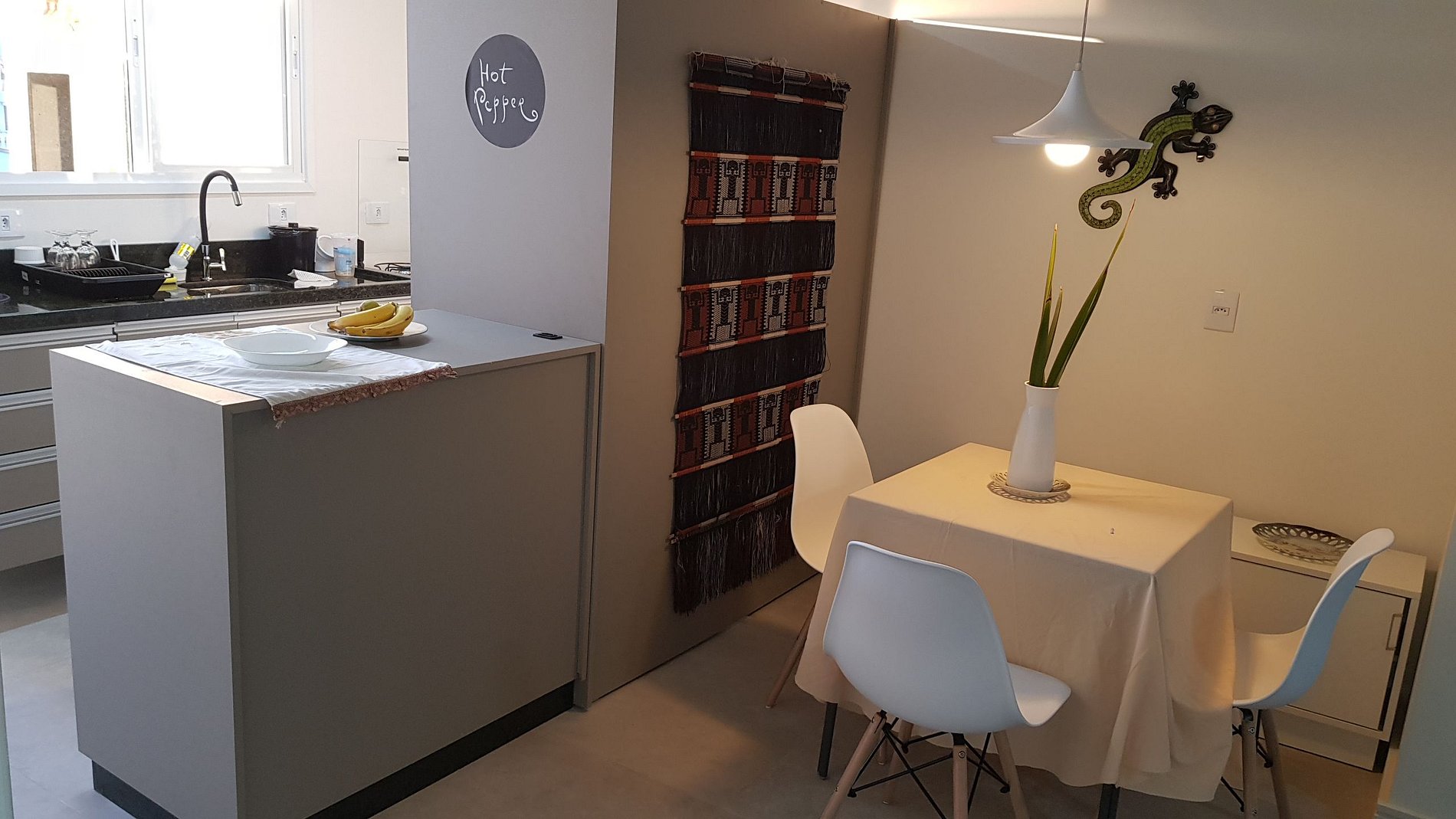 Se estiverem acompanhados por pets, há uma caminha e um cobertor próprio para eles sempre que estiverem dentro do apartamento. Vivendo em comunidade, é salutar mantê-los sempre na guias, para que eles não perturbem os outros hóspedes, nem adentrem em unidades outras. Há também, no jardim, uma área só para eles, ao lado do pergolado.